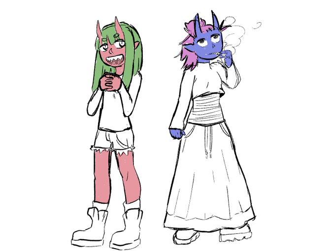 my mascot oc (left) works at a tollbooth my sona (right) is a jeweller https://t.co/7khbW4GYwT