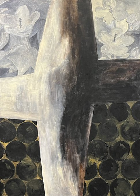 写真は「花と空気」キャンバス、アクリル、100×72.7cm、2022年の全体と部分。