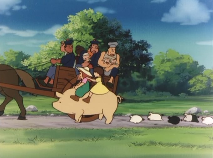 宮崎駿「僕の中には、二種類の豚が住んでいます。ひとつは『紅の豚』のポルコ・ロッソに通じる豚、もうひとつは、飼ったら楽しそうだなという生きものとしての豚です。豚を連れて散歩したら楽しそうでしょう」
