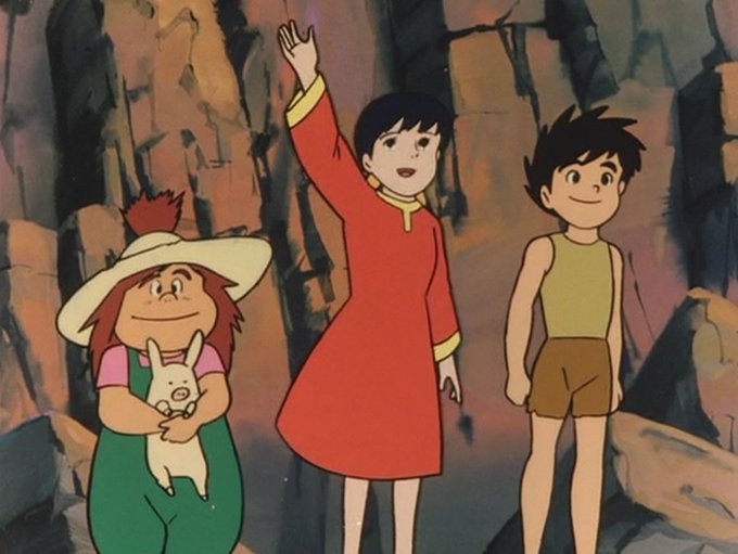 『天空の城ラピュタ』初期案では、坑道に降りたシータとパズーたちが迷い込んで、飛行石がギンギンに光る場所に入り込むというシーンが考えられていました。しかし実現せず、代わりにポムじいさんと出会ってから、石たちが共鳴する、というシーンが作られました。
