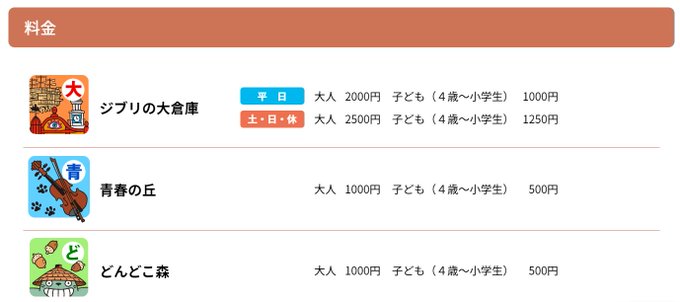 ジブリの大倉庫:平日2000円、土日2500円