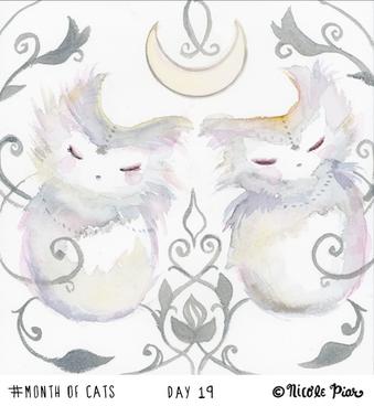 Day 19: Moon & Mirror #MonthofCats #Painting a #cat a day. #art #anime #wicca #illustration #cutecat #moon #twins
