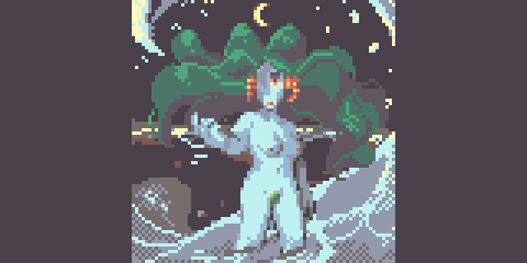 #blueart (mostly) in pixels! because using limited palettes in pixel art is my jam!