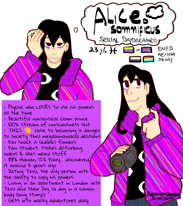 @knifeorchid Alice Somnificus is an odd individual who wants to share his own (very different) views of the world! He's a psychic & extremely interested in manipulating other living beings.