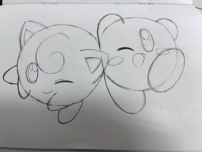 つくめちゃと左手でお絵描き対決しましたが個人的にはとてもいい勝負した気がします ちなみに2枚目は目隠し左手カービィです