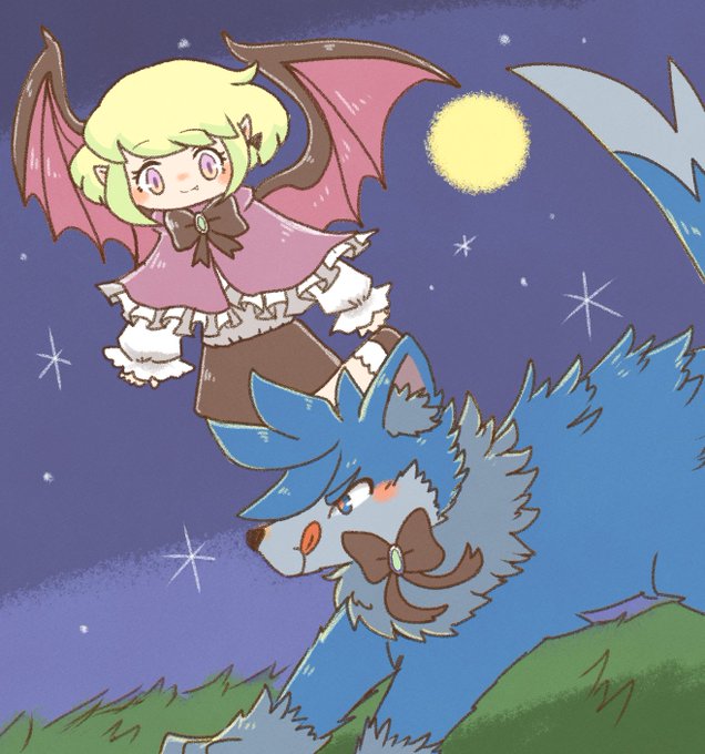 ちびっこ主従🐺🦇🚒🔥ちゃん 夜は傘をささなくていいから思いっきり遊べるふたり