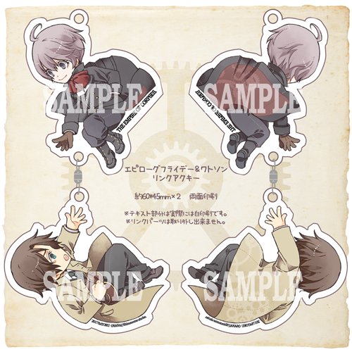 ハルコミ東ツ57b『東雲書房』 エピローグフライデー&ワトソンアクキーです リンク状態で一点になります カニカンじゃないので外れません