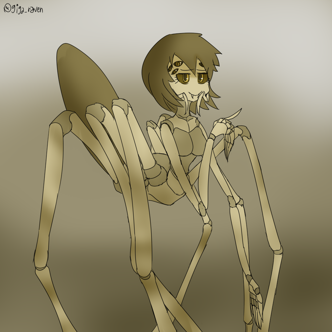 #人外版深夜の真剣お絵描き60分一本勝負 お題は「アラクネ」です イエユウレイグモちゃん