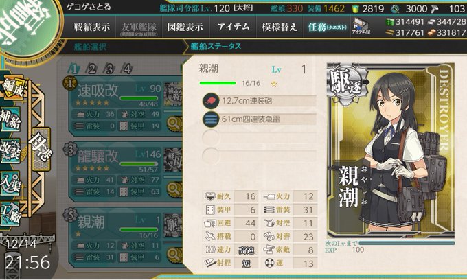 艦これ2-4ボスからやっと親潮出た!任務ついでに周回してたら出たわ!最初サンタ衣装だから別潮?さんのクリスマス仕様かと思って音声聞きそびれたw!これで親潮の任務もできる!