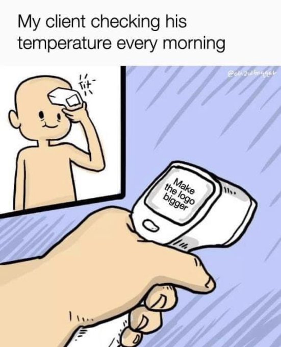 Not just clients, my design teacher used to scream this at us in art school. Such relatable content with a sprinkle of ptsd 🥰