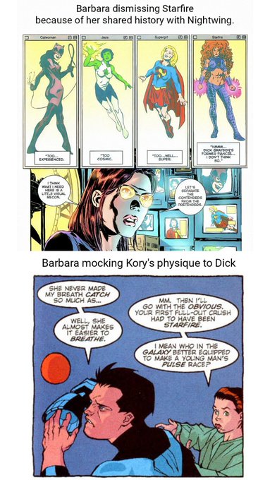 What's annoying is that Bruce actually showed respect towards dickkory's relationship and he's always called Kory by her name back then but hey dickbabs writers have to retcon that just cuz they can't get over their pettiness towards kory. 🙄 https://t.co/PhHxag3Fh6