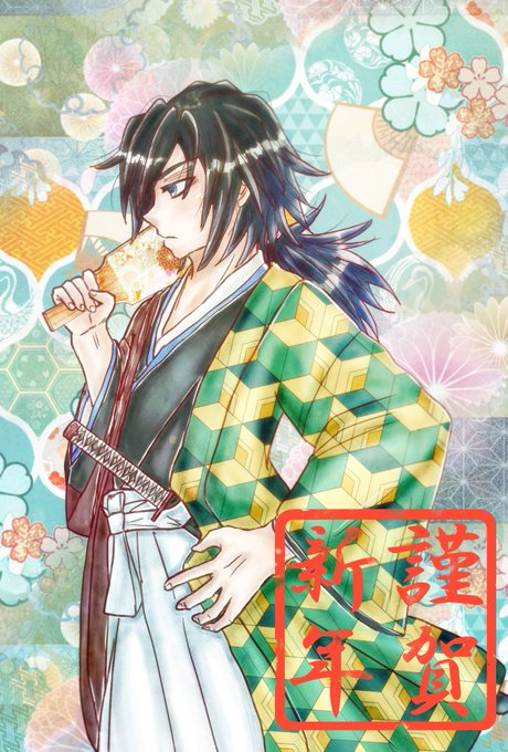 勿体ない精神でうちの妹ちゃん用に描き下ろした鬼滅の義勇さん年賀状を掲。