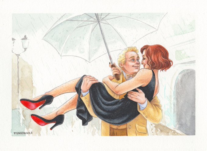 Aziraphale scoops Crowley on a rainy date night ❤️