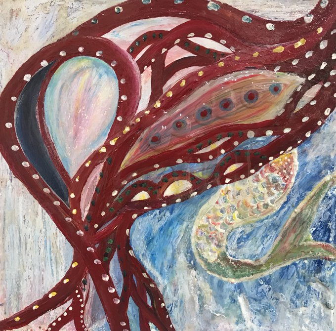 メリークリスマス銀はにゃです🙃現在弊社川崎工場2階食堂にて展示中の油絵画です。現在のエントランスウィンドウアート製作者、武蔵野美術大学油絵科Iさんの作品をお借りしてます。来年2月中旬までの限定展示になります😮 #日本理化学工業株式会社 #油絵画 #キットパス