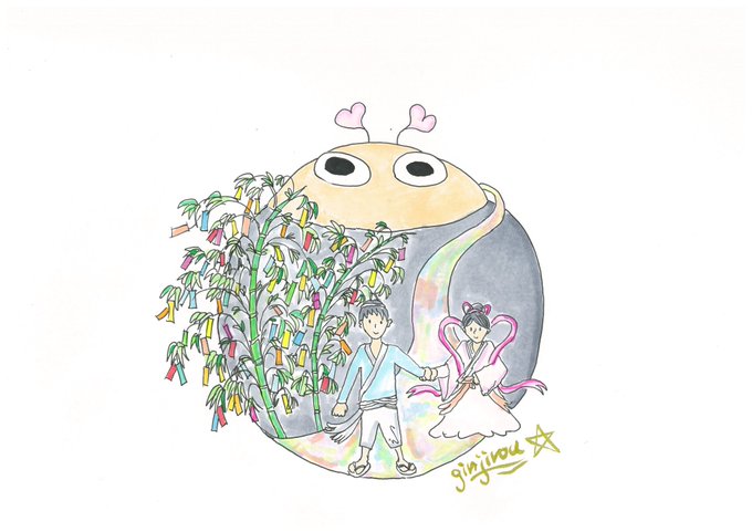 過去絵ですが、着せかえギンちゃん七夕バージョン😁✨ #七夕 #銀次郎 #イラスト