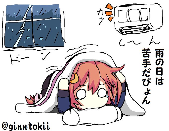 「雨の日は苦手だぴょん……ぷっぷくぷ~……」