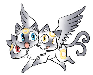 ニャンニャンベロス、使い魔らしく黒猫にしたかったけど、日輪模様を付けただけでどこかで見た猫系キャラのパクリっぽくなったので;、シャム猫模様にしてみました☆
