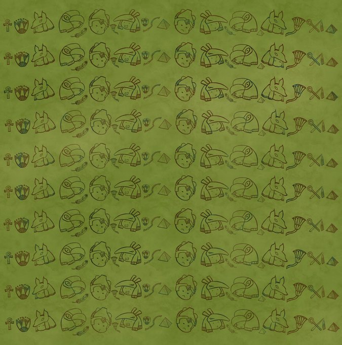 こちら、ずーっと前に自分と友達に配るだけのグッズ用に作ったもの(だから髭ちゃんがおらんのです🥲) この機会にこれを背景に利用しようかと☺️ なお、オシリスの付け髭は素で忘れてますww(定期)