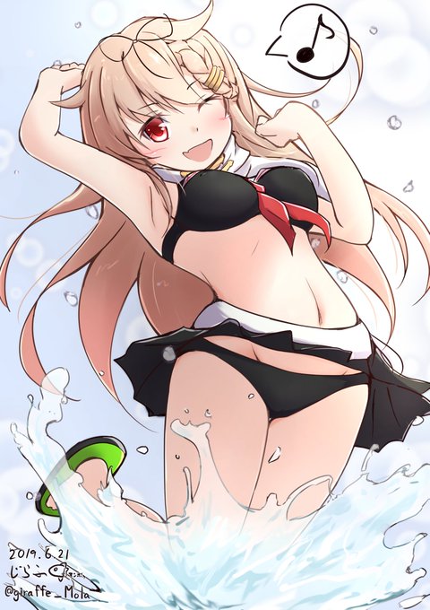 はしゃぐ夕立 #艦これ版深夜の真剣お絵描き60分一本勝負 #艦これ版真剣お絵描き60分一本勝負_20190621