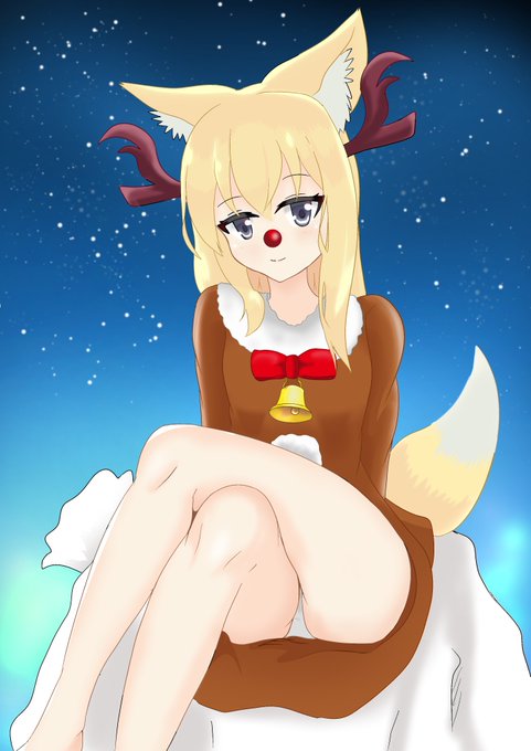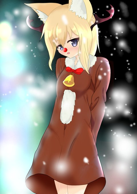 クリスマスユズハ #オリジナル #獣耳娘 #狐娘 #狐っ子 #オリキャラ #クリスマス #赤鼻 #トナカイ https://t.co/wynurOPa9k