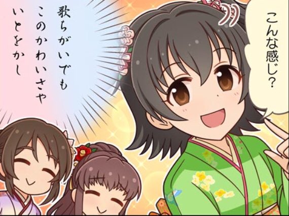 和服を着て、三つ編みを後ろで纏めている。春や桜にあわせた暖かで詩的な台詞はおくゆかしく、優雅。赤城みりあを見る表情もとても暖かい。