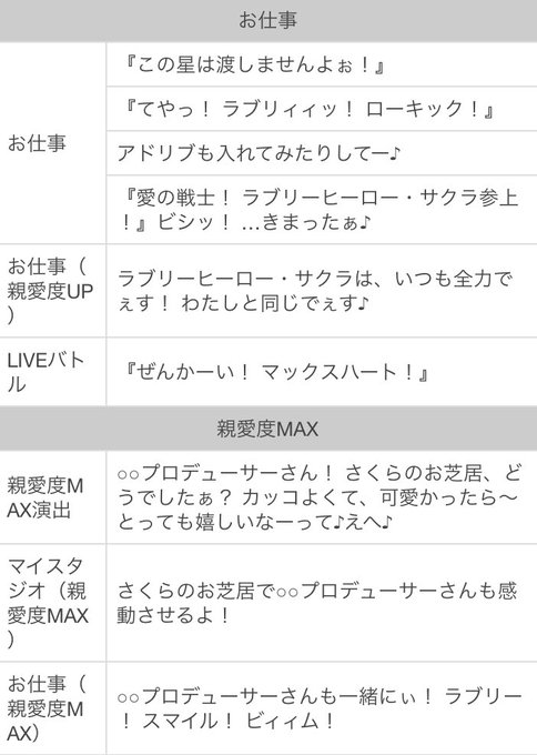 特訓後の衣装はユニット【ベルカント】のもの。音楽の趣味を聞くはずが思ったものと違うものを聴かされる。大西由里子とはその後舞台を観に行った。