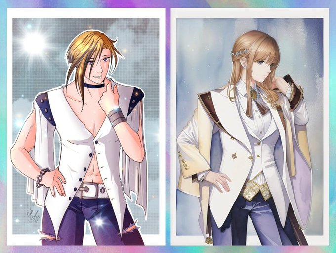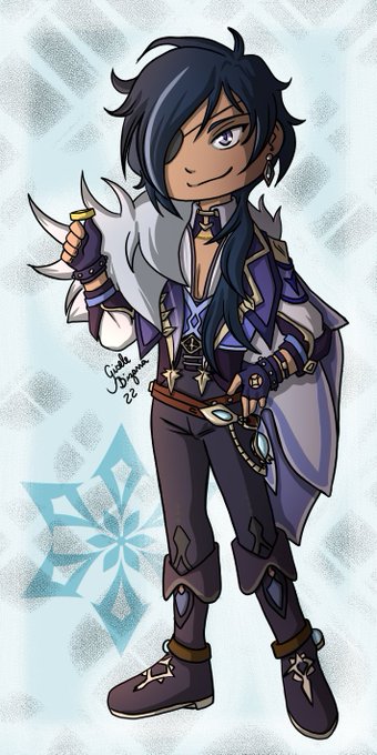 Vários desenhos do Kaeya, de Genshin Impact, passando pela minha timeline porque lá no oriente já é dia 30. Aniversário do personagem. Amanhã vou tentar fazer um desenho dele também. Mesmo eu não jogando muito, ele é meu personagem principal.