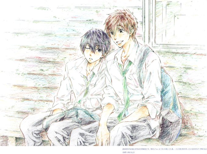 ✨ ARTE OFICIAL SPLASH FREE! 🏜️ Todo es normal... hasta que te das cuenta que el pañuelo de Haruka cubre la entrepierna de Makoto #MAKOHARU 💚💙