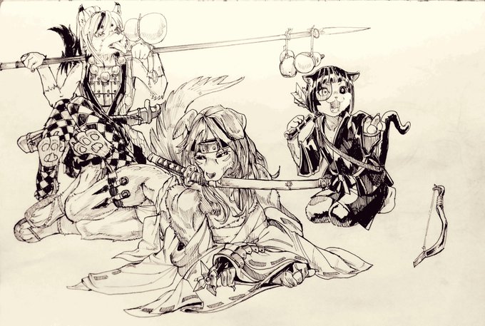 #アナログ絵 #ケモノ 獣人くノ一部隊