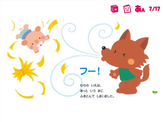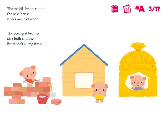 あらかわしずえさんの描くこぶたがかわいくってわんたのお気に入りわん!英語の昔話の言い回しなどが分かって勉強になるよ。