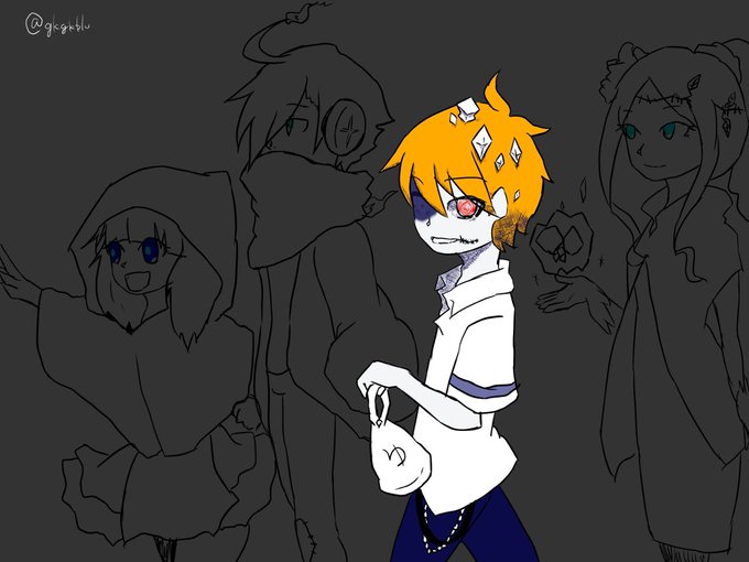 敢えての男子縛りデザでしたがこの目つき…うーん推しの目。アシメ狙うも向かって右側に特徴置きまくりで通常運転でしたね!描いてもらった版はちっちゃい自撮りネタを拾ってもらってたのが嬉しかったです。 画像はデザイン画とちゃんと絵と2Pカラー(?)
