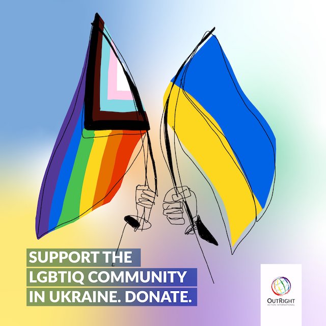 国連本部に常駐してLGBTQの人権と平等の推進を訴える唯一の国際LGBTQ団体であり、国連LGBTコアグループの事務局も務める「Outright」が、ウクライナのLGBTQにシェルターを用意して安全を確保するための緊急支援キャンペーンを開始しました。ぜひドネーションにご協力を!🇺🇦 https://t.co/kJQASJa65J