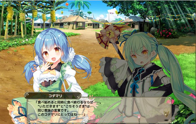 8周年だし久しぶりに庭園変えてみた。 周回するにもご飯大事ということで食べたり飲んだりしてる子達で一枚。 #花騎士8周年 #花騎士団長の庭園