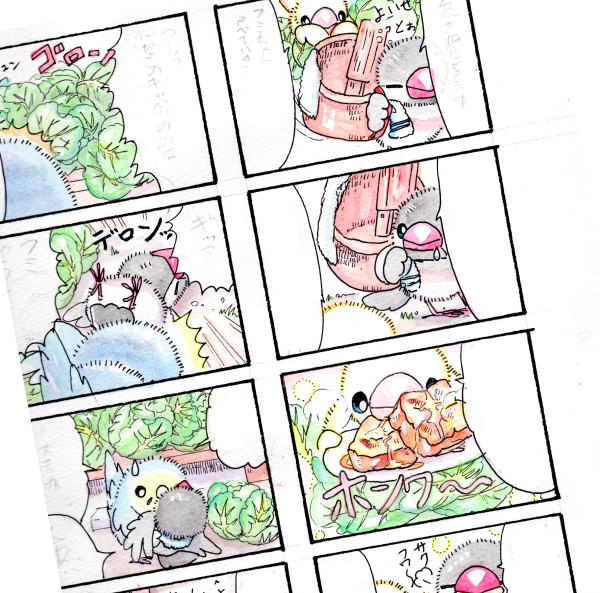 四コマ途中 ひたすら色塗り。 文字はこれから正書です。