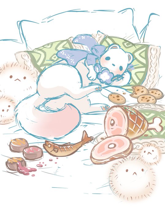 He ate the first cookie so let give him more and also more pillow to lay on.