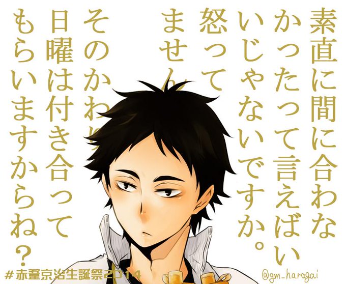 #ハイキュークラスタさんと繋がりたい こんな時間にこっそりと。音駒と及川さん描いてる事が多いですが赤葦が大好きです。旭さんも大好きです。