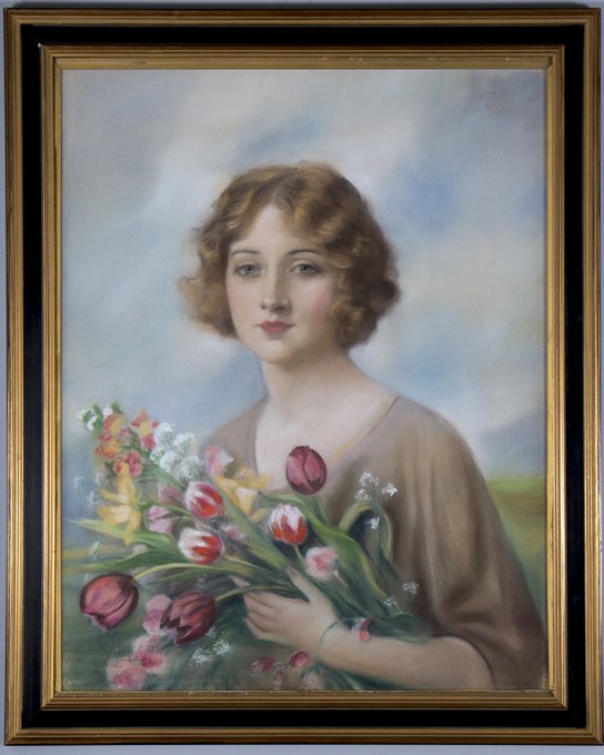 Pastel created by illustrator J. Knowles Hare as advertising calendar art for Sunshine Biscuits. ☀️