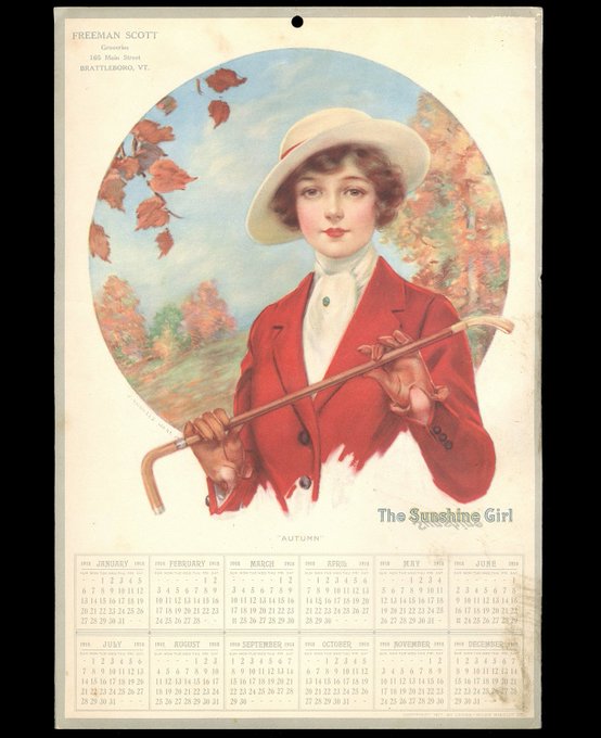The NY bakery marketed calendars in the early 1900s with "The Sunshine Girl". This example was titled "Autumn". 🍂
