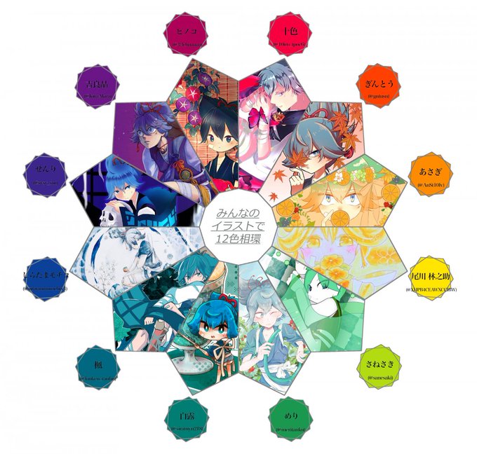 #みんなのイラストで12色相環 めりちゃん(@meritanku)主催の、みんなのお小夜で12色相環に参加させて頂きました🌟 とても素敵な企画に参加出来て楽しかったです…!有難うございました!☺️💕