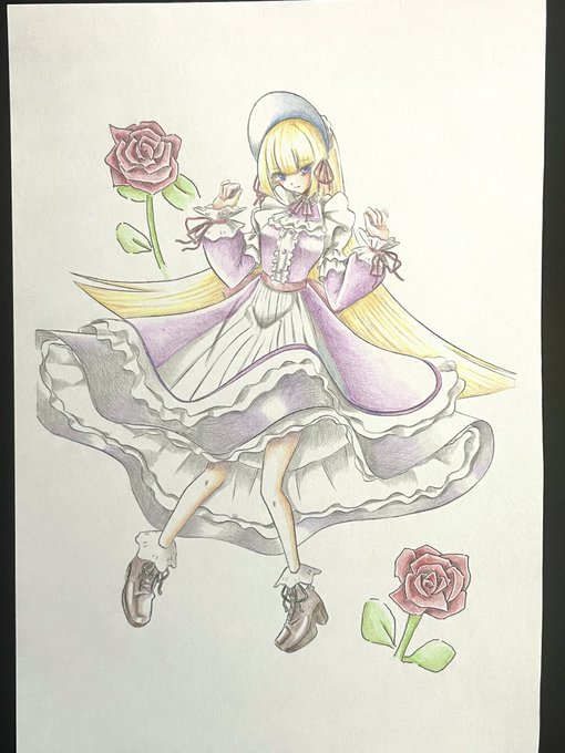 alphaさん(@alpha_maid1226 )よりいただきました線画を塗りました。着色は色鉛筆です。