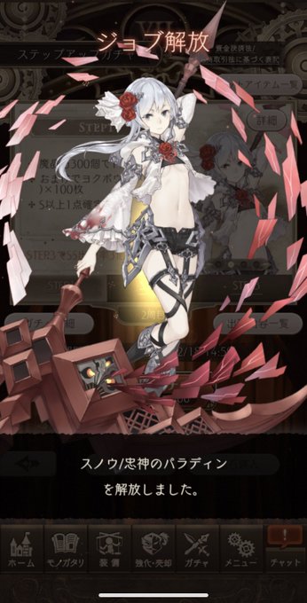 聖ジョブ、今回の前衛は3人とも未所持だったし、ステップ3で選べるのに釣られて。ステップ1でアラジンが来てくれて、ステップ2でもアラジンが。ステップ3はすり抜けSSが1つ来て、選べる枠でスノウ!