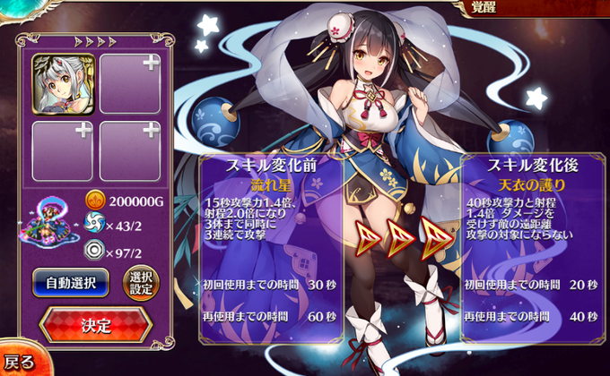 レイメイちゃんとランファさん覚醒。ランファさんは屍霊仙のほうがスキル的な相性は合ってそうだなと感じた次第。まあ、耐久度が上がるから良いのかな。