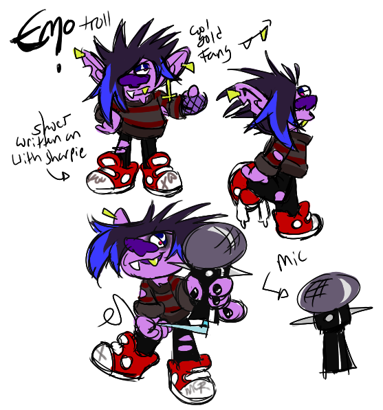 the emo trolls saw the pop trolls in the school yard and stuck their middle finger up at them. trollsona commission for @ae0lia !!