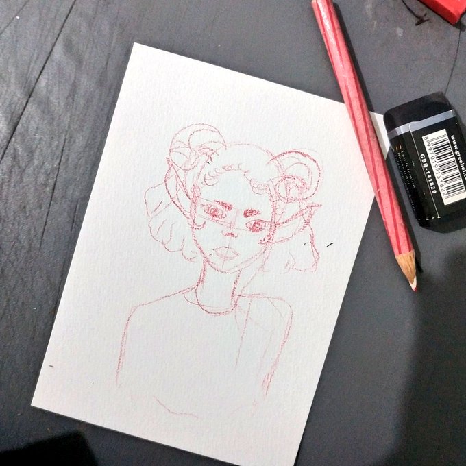 pelajaran kali ini. Kayanya next time kalau sketching gausah pake wacol pencil merah. Akhirnya ngeblending pas coloring susah 😭😭