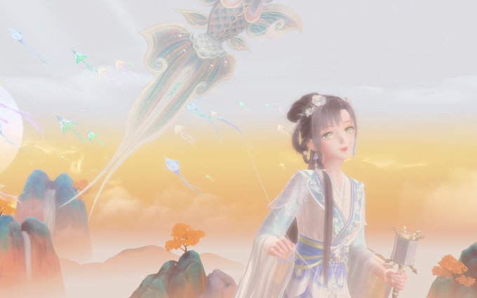 昨晩から延々と凧揚げしてた 4枚目秦衣お師尊イベの背景が違和感ないかな 5年分ぐらい凧見た #閃耀暖暖