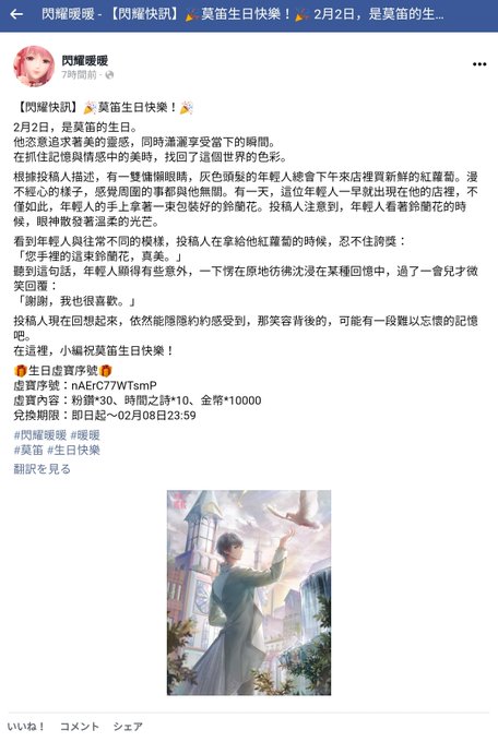 nAErC77WTsmP #閃耀暖暖 莫笛さんお誕生日コード🎂