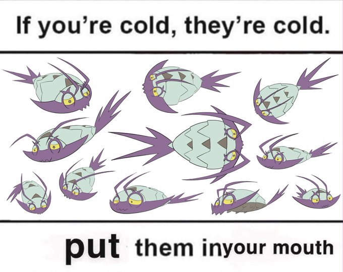 Probably could've just found pictures of Wimpod for this meme, but no, I had to go ahead and draw them all. #GameFreak #Pokemon #Wimpod #Meme #ifyourecoldtheyrecold #puttheminyourmouth