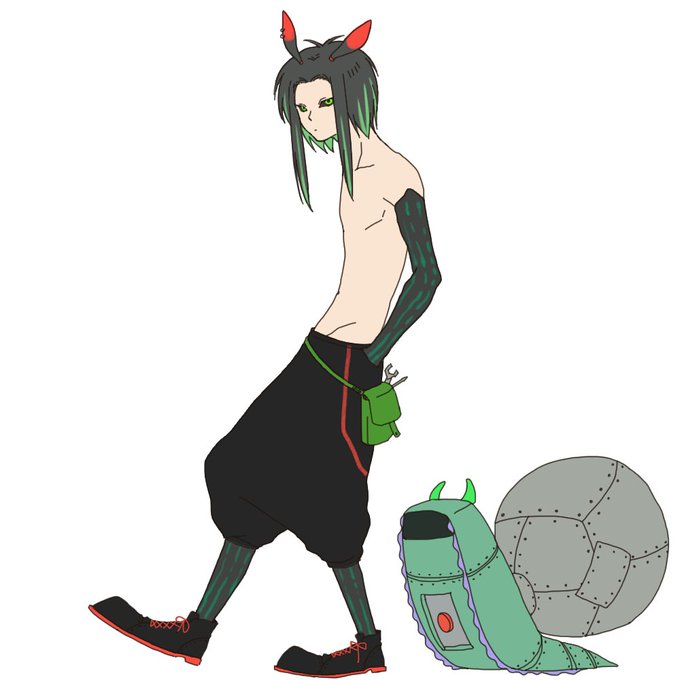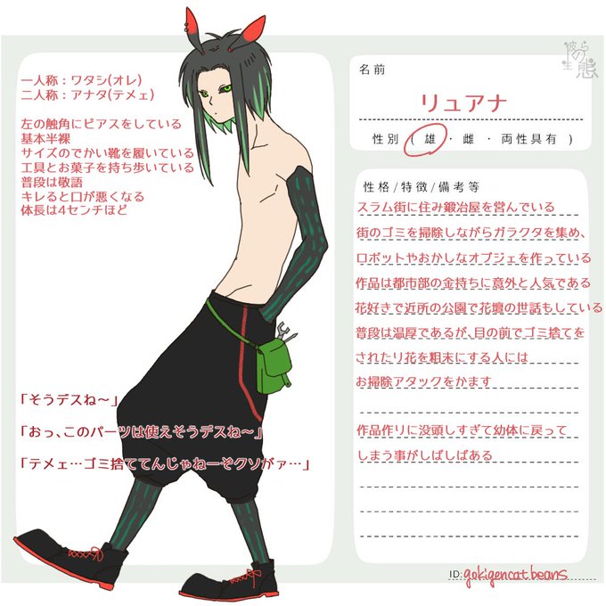 #彼らの生態 できた…やっとできた 強面ですが天然ぽさのあるリュアナくんですよろしくおねがいしま~す! 連れてるのはおそうじウミウシくんです