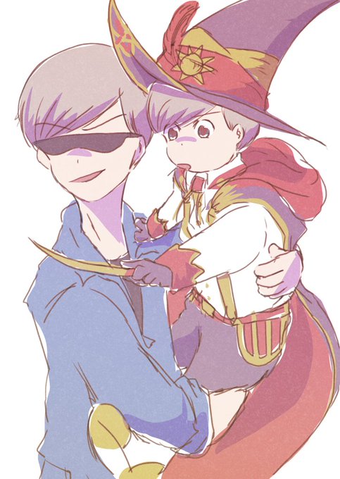 ※年齢操作 「カラマツあっちだ。魔術の跡が残ってる」 「フッ…オーケー行くぞマジカルベイビー!!!」 「だぁから俺お前の何倍も年上だってば~」 呪いかけられて犯人を追っかけてきた魔法お兄ちゃんと偶然出会った弟そっくりのマグル このあとあまりの怪しさに職質される