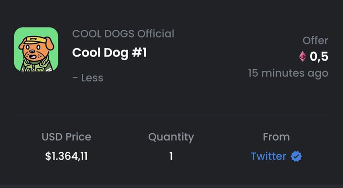 So @Twitter beat @garyvee AND @MrBeast to the punch?! Sheeeeeesh!! Well maybe one of the biggest social media platforms in the universe knows a thing or two about #NFTs welcome to the @Cool_Dogs_ family Twitter! 🐶🐦 #NFT #NFTCommmunity #coolcats #opensea #cooldogs #crypto #ETH